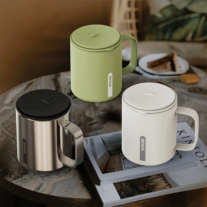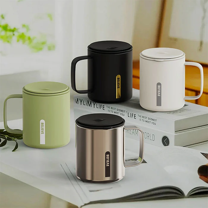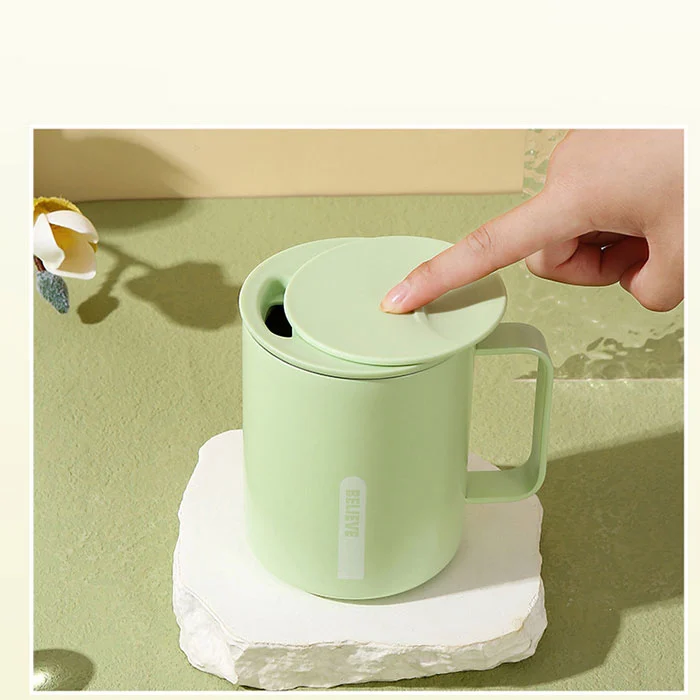 Linggih di kantor pikeun période nambahan waktu bari nginum cai, hiji klik lawang tina tutup teu ngaganggu gawé, nyadiakeun insulasi jeung cooling, cocog pikeun kopi jeung tea;