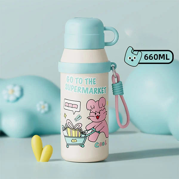 There have one small cap in the top of this recyclable stainless steel water bottle with straw, the map is also 304 stainless steel material, it can be filled with water and consumed by covering the top.