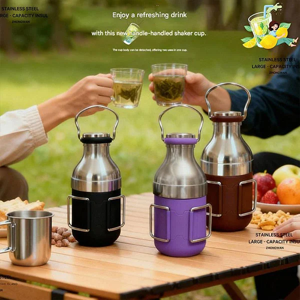 Botol insulasi luar anu tiasa dicabut hadir sareng gagang pikeun gampang dibawa.