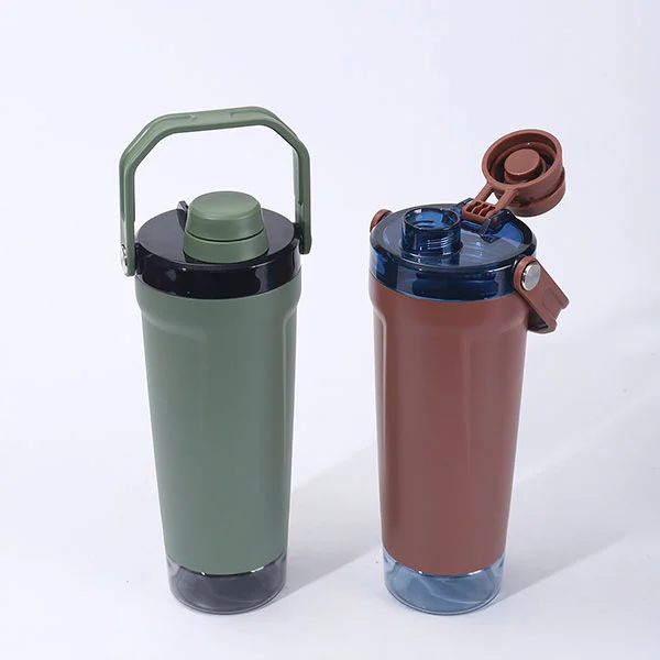 You can bring our stainless steel shaker bottle with you when exercising. It has a storage compartment for protein powder, and you can replenish your nutrition in a timely manner after exercising