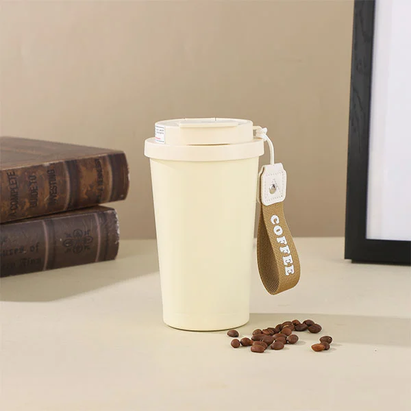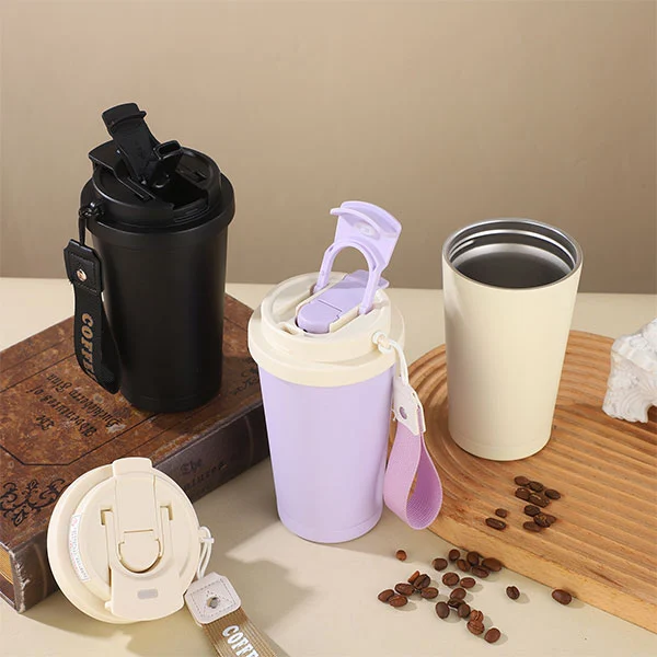Botol mobil kopi stainless steel sareng jarami dilengkepan kana pad sutra-silikone silikon.